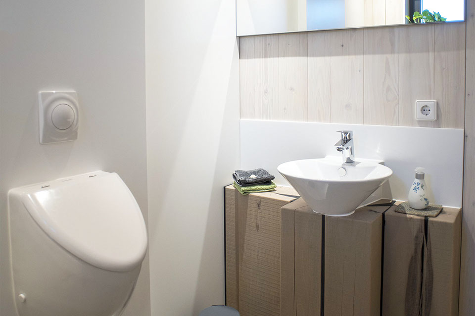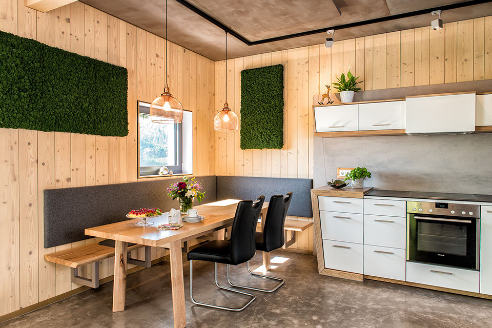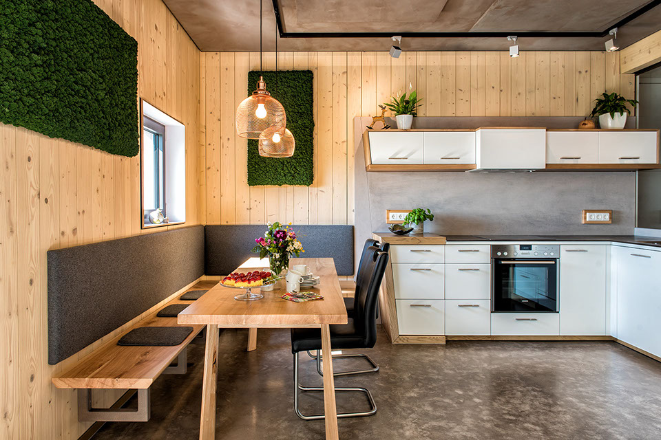 Mit viel Leidenschaft, mit großer Liebe zum Detail und der zentralen Idee daraus etwas Besonderes entstehen zu lassen, wurde es vor dem Verfall gerettet, kernsaniert und in den letzten Jahren Stück für Stück zu einem schmucken Design-Ferienhaus umgebaut. Mit viel echtem Holz in Kombination mit Kupfer, Glas und Beton herrscht in der BRENNKÜCH eine helle, warme und durchweg harmonische Atmosphäre.