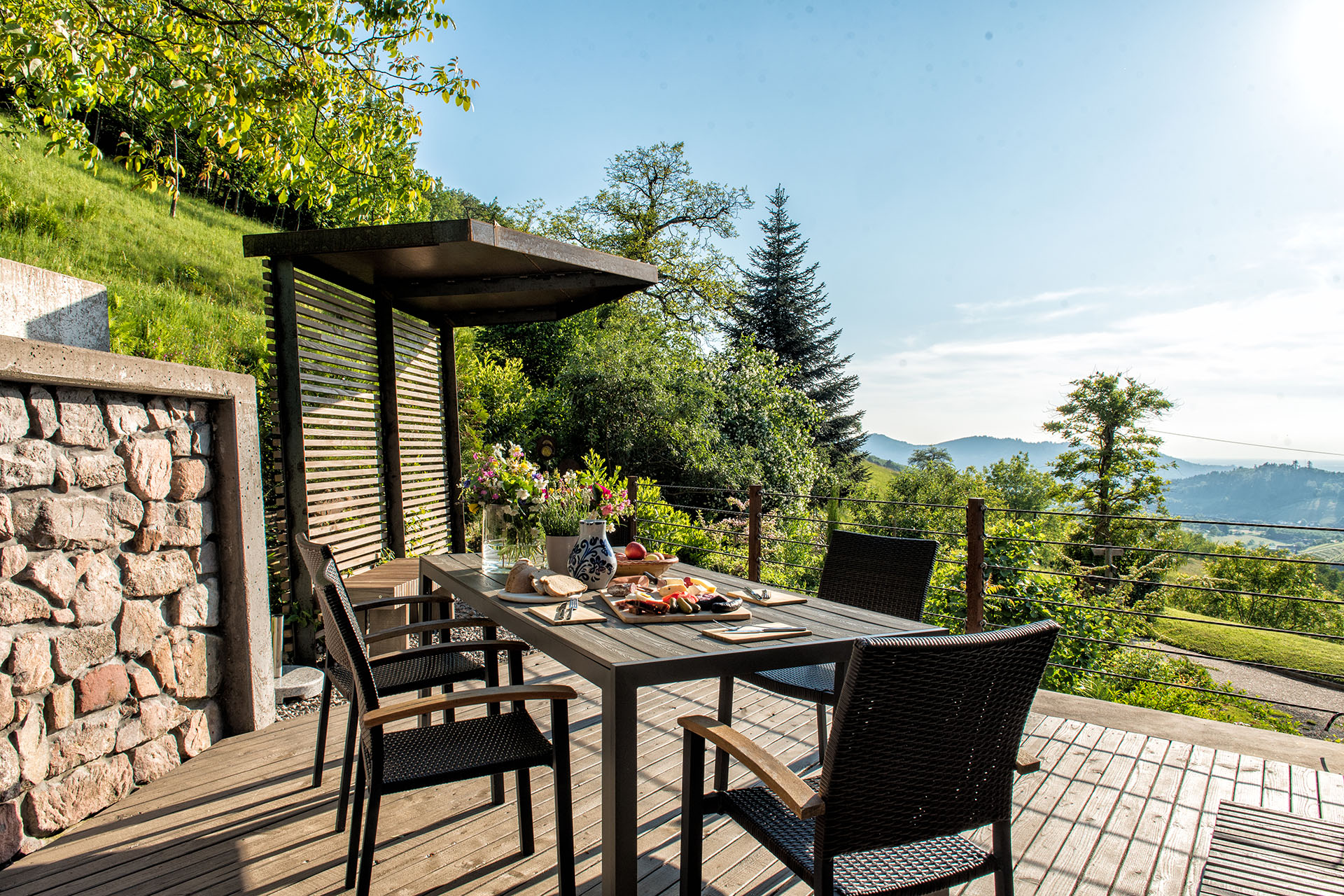 Hier ist der ideale Ort für alle, die sich gerne auch mal was Besonderes in besonderer Umgebung gönnen. Sanft eingebettet zwischen Wiesen und Wäldern wohnen Sie hier mit atemberaubendem Blick, der über die Schwarzwälder Gipfel bis hin zu den Vogesen reicht. Nicht nur das Bergpanorama ist beeindruckend. Insbesondere versprüht die markant moderne Architektur und die hochwertige Einrichtung einen ganz besonderen Charme und bietet ein einzigartiges Urlaubserlebnis weit ab vom Massentourismus.